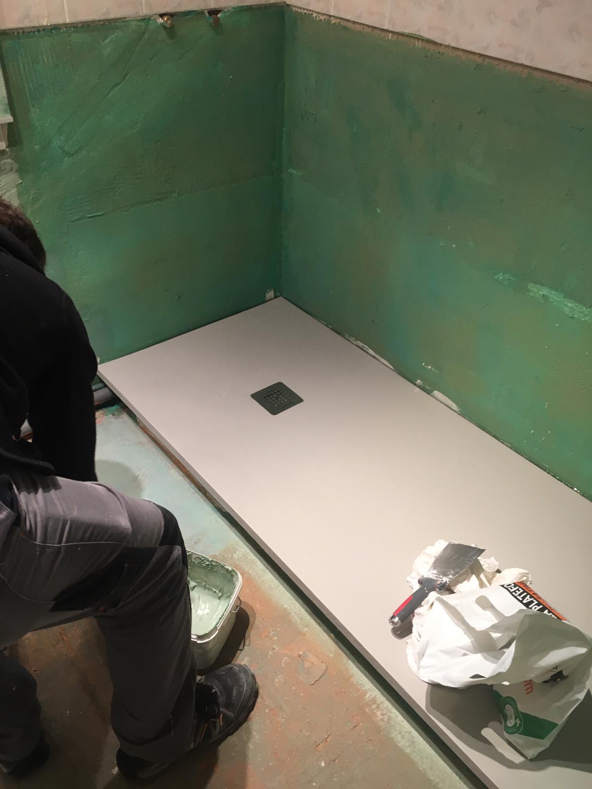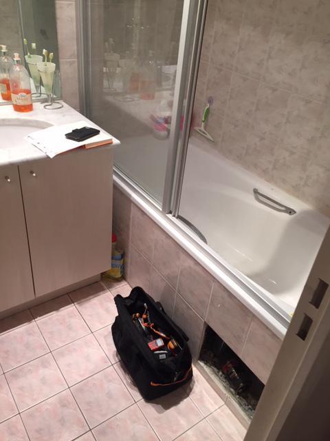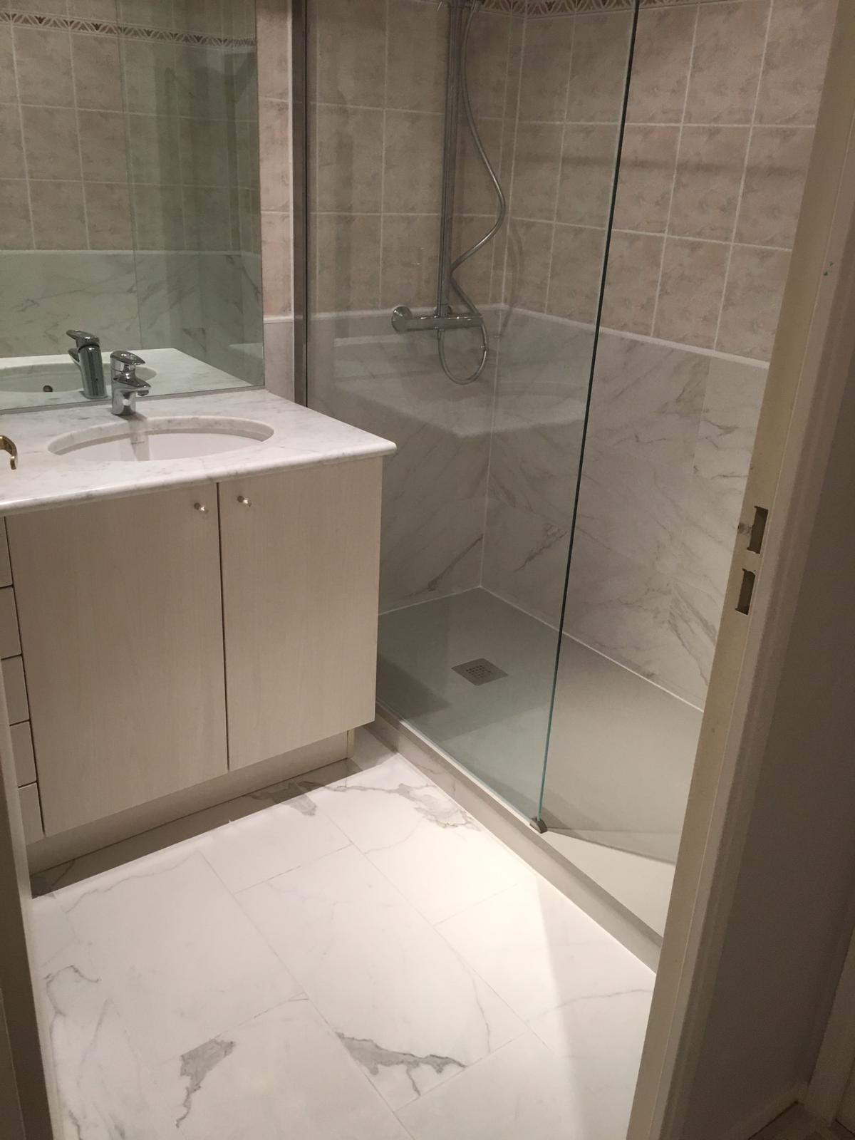 Rénovation de Salle de Bains en convervant certains éléments existant. Remplacement d'un baignoire par une douche à l'italienne. Refonte compète de la plomberie EC/EF et évacuations douche et lavabo. Dépose/pose du carrelage mural partiel à 80 cm. Dépose et pose carrelage / marbre au sol. Posçage et renovation du plan vasque en marbre.